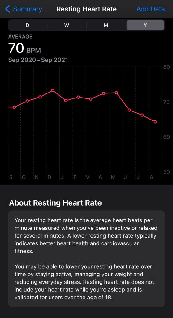Overall I have felt my fitness and endurance level has well, levelled up big style. My resting heart rate has fallen almost 10 beats per minute since March. This is the biggest cardio vascular improvement I have ever seen in myself.