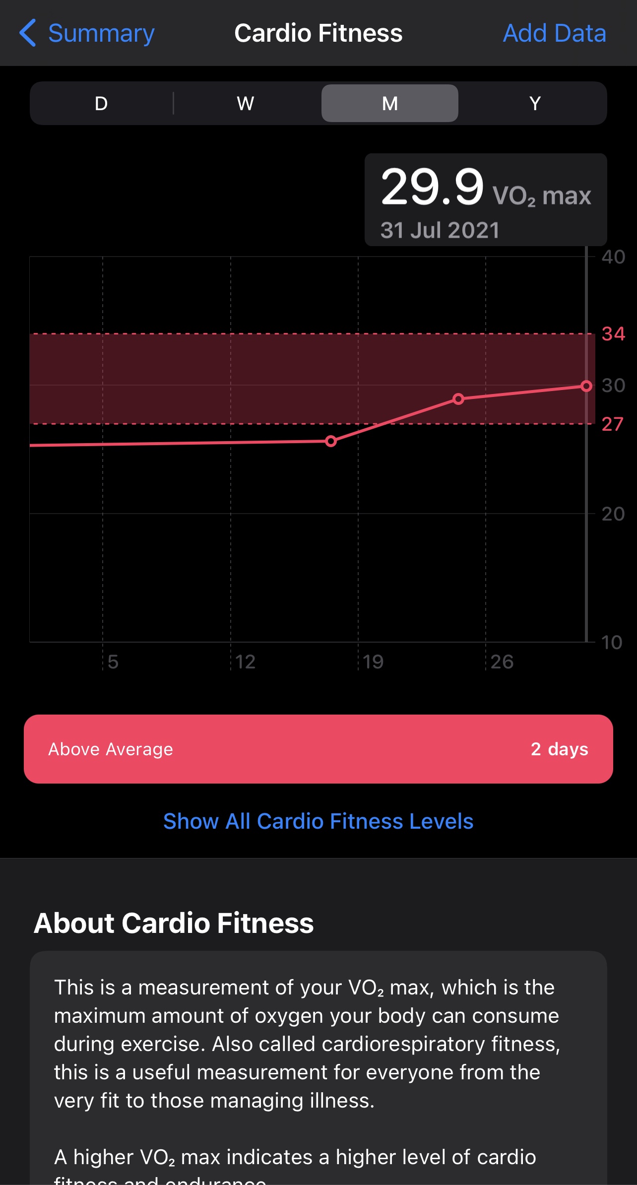 I have started paying attention to my Vo2 Max level with my Apple Watch when on long walks, this has gone from Below Average to Above Average, something I am very proud of.